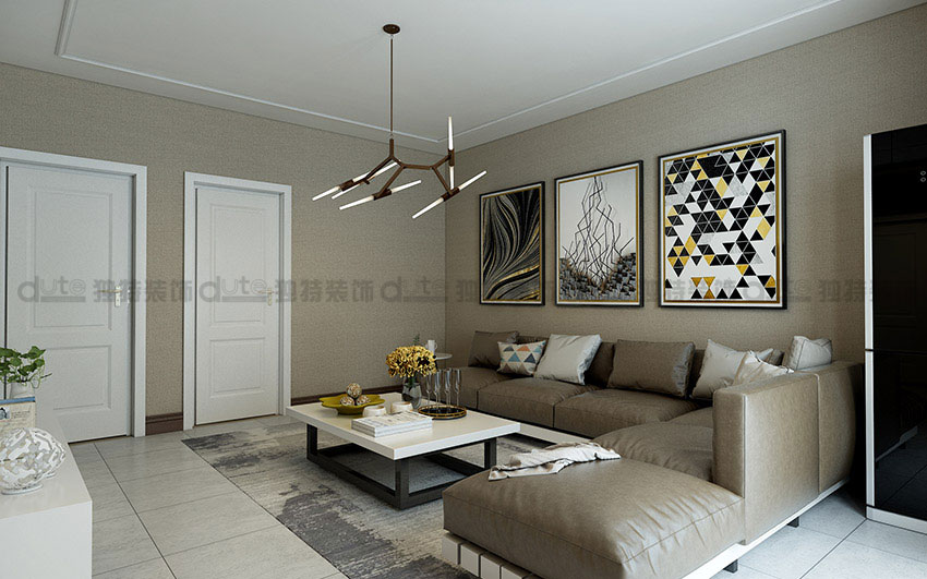 整體方案以現代風格為主,主要采用米色系列,戶主是一對青年夫妻,整體裝修以溫馨為主。整套方案空間感比較良好,電視墻采用米黃色墻磚通鋪做背景墻。吊頂造型采用回字形吊頂加上筒燈和燈帶,整個空間非常溫馨。客餐廳地面整體采用米色系列拋釉大地磚通鋪。搭配上實木框架,棉麻材質的布藝沙發,簡單而又靜雅。