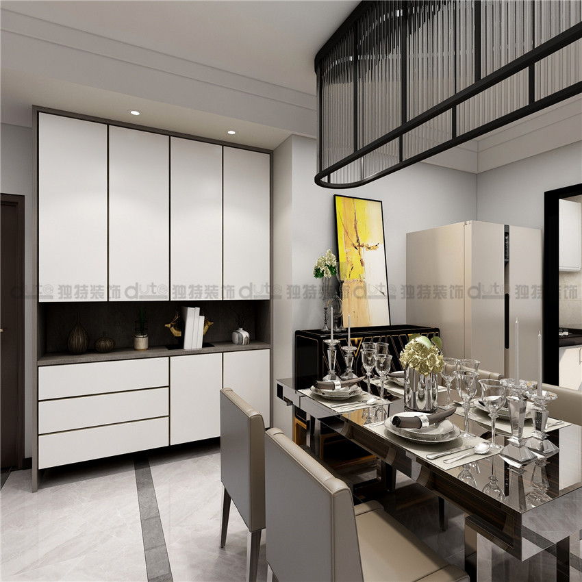 案例說明:搞工程的老板給女兒結婚準備的婚房,全程溝通簡單明了,干脆,從量房到設計出圖,施工開始,非常迅速,設計師有最大的獨立設計感,在效果圖的還原上做到了基本百分百還原,業主非常滿意,通過灰白材質的碰撞,拉伸空間感的同時,做到一個整體舒適度的協調,搭配上后期的軟裝。